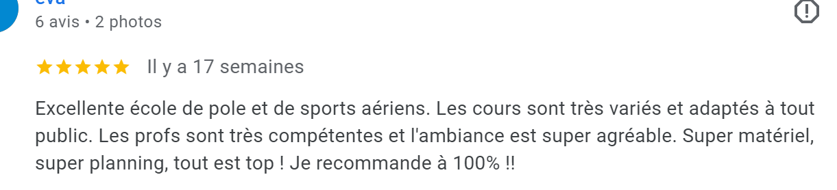 Et si au contraire tu es déjà un(e) mordu(e) de la pole dance ou d’aériens, nous avons également des cours pour toi.